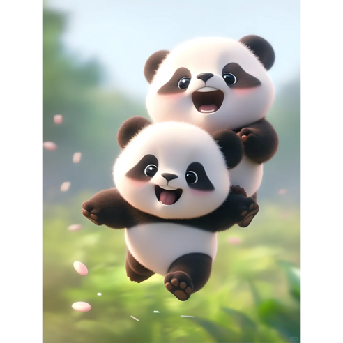 함께 노는 판다 쌍둥이 우드 조각퍼즐 귀여운 아기판더곰 캐릭터 ...