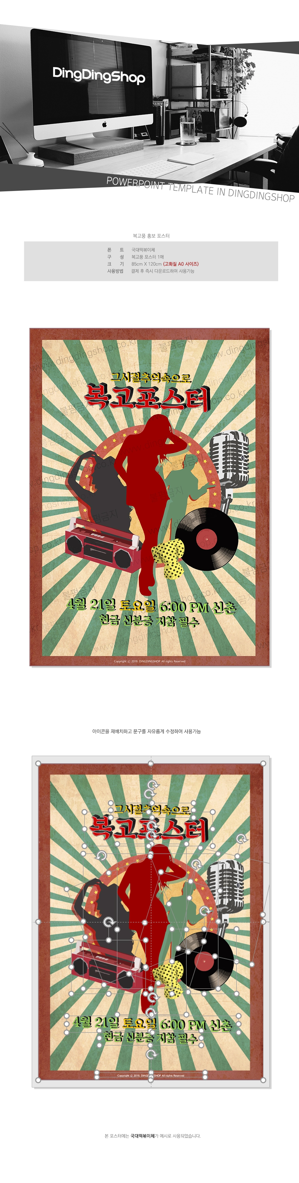 복고풍 홍보 포스터 PPT템플릿 : 피티엔디 :: 파워포인트 테마 사이트 ::