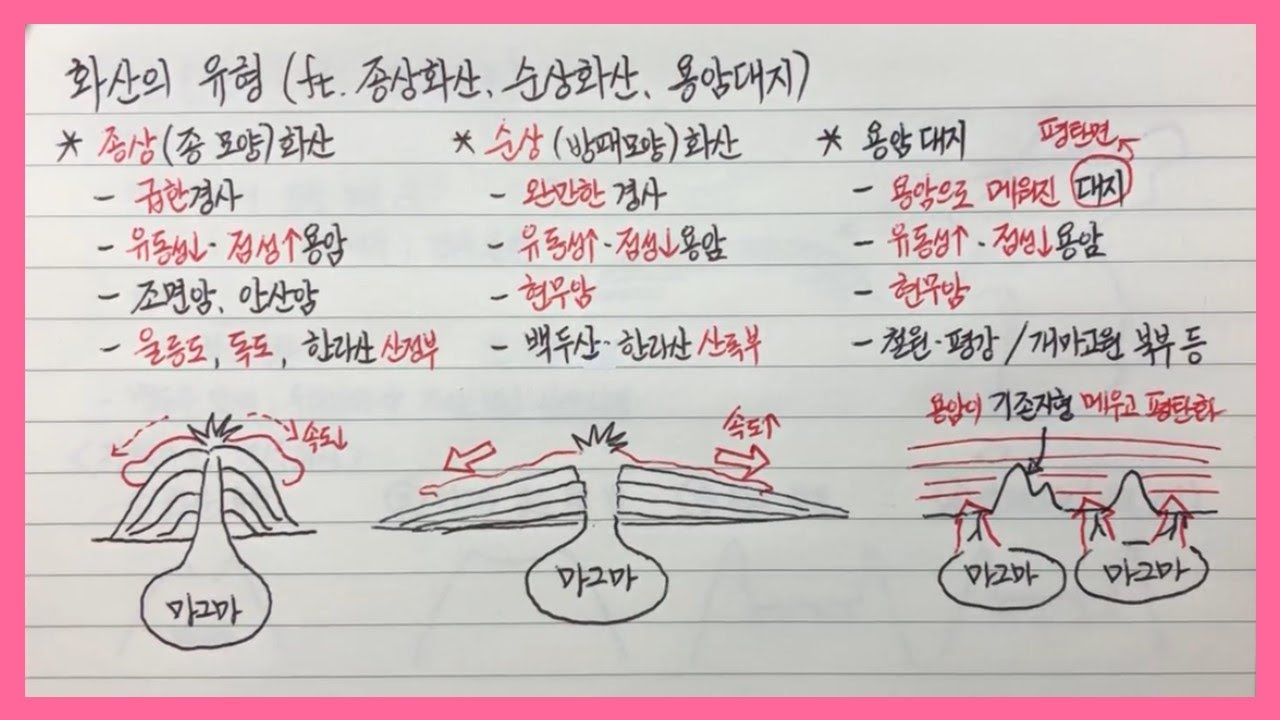 [한국지리]【43】 종상화산, 순상화산, 용암대지(화산의 유형)(2단원 지형 환경과 인간생활)ㅣ한국지리 강의ㅣ한국지리 노트필기ㅣ한국지리 개념ㅣ한국지리 공부